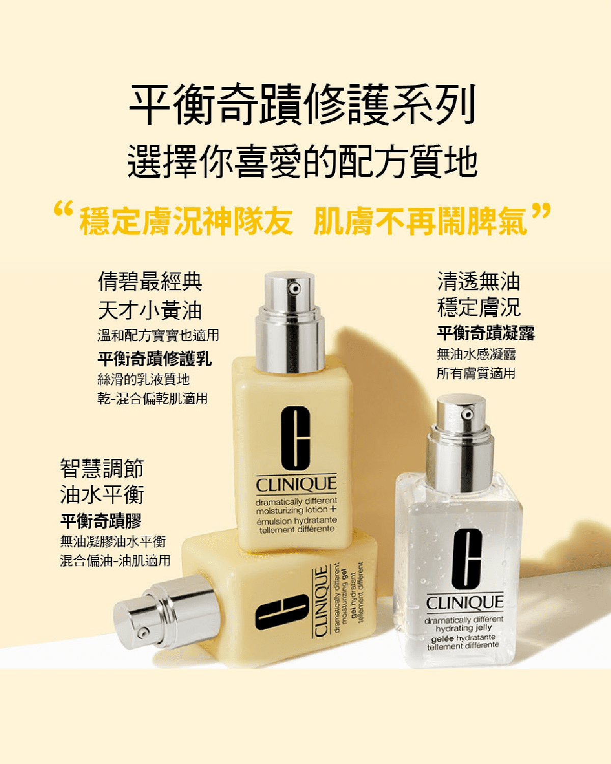 最後再依據您的膚質使用平衡修護奇蹟乳、凝膠或凝露。
